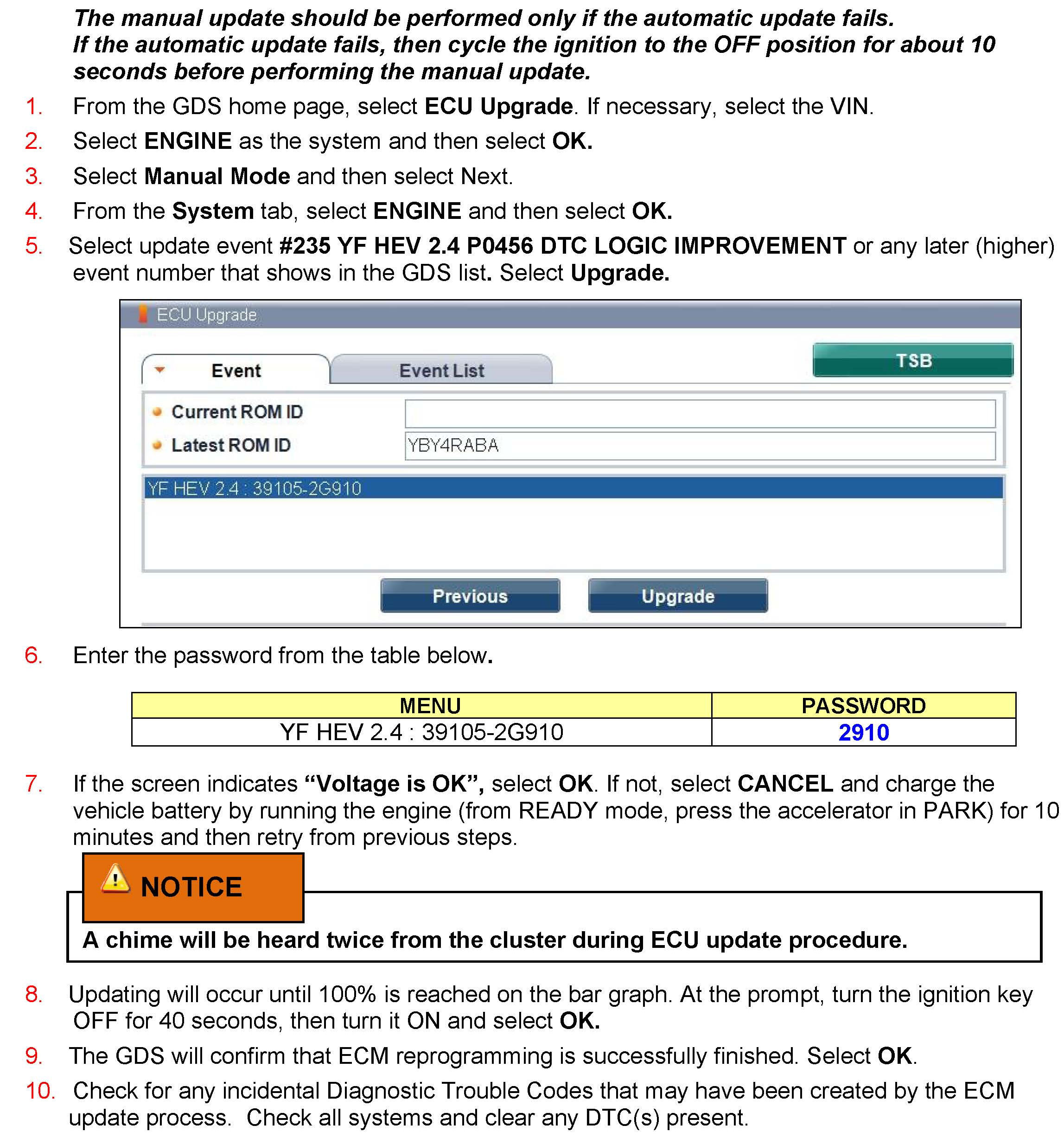 GDS AUTO MODE ECM UPDATE PROCEDURE