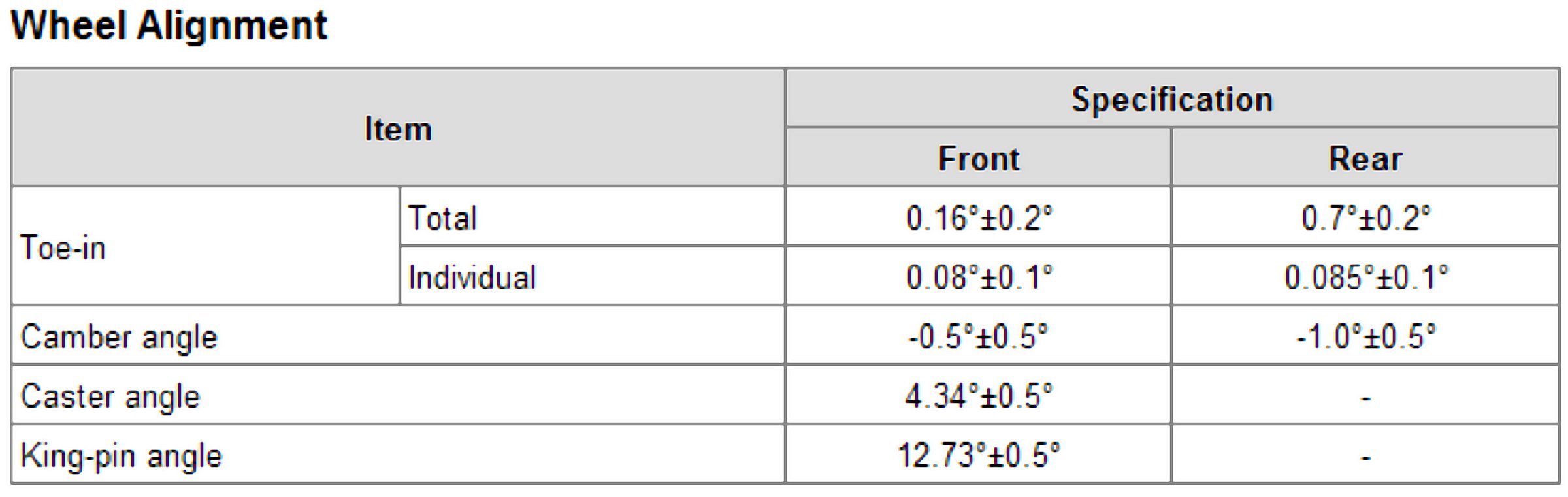 Wheel Alignment Specifications