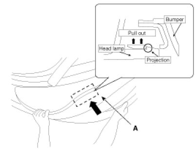 - When you pull out the front bumper, the font bumper could be damaged by the projection (A).