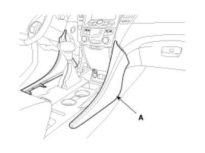 7. After loosening the console mounting screws and bolts, then remove the console assembly (A).