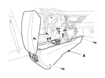 1. Using a screwdriver or remover, remove the crash pad garnish (A).