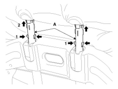 6. Pull out the headrest guides (A) while pinching the end of the guides, and remove them.
