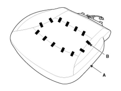 5. After removing the hogring clips (B) on the front of seat cushion and remove the seat cushion cover (A).