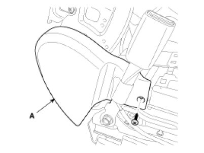 4. After loosening the mounting screw, then remove the front seat shield cover (A).