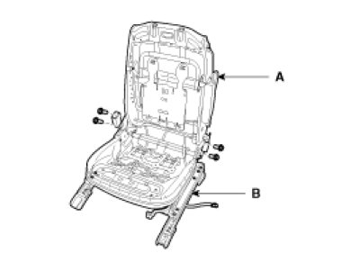 5. After loosening the mounting bolts, then disconnect the seat back frame (A) and seat cushion frame (B).