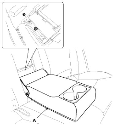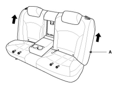 1. After loosening the mounting bolts, then remove the rear seat assembly (A).