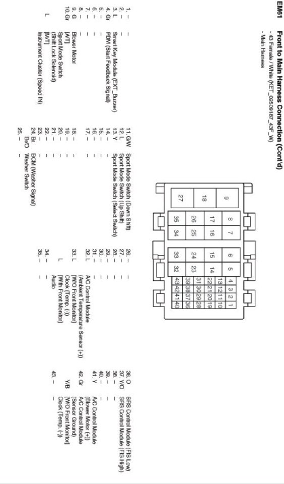 EM61 Front to Main Harness Connection: