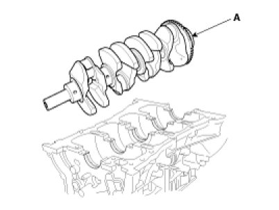 22. Lift the crankshaft (A) out of the engine, being careful not to damage journals.