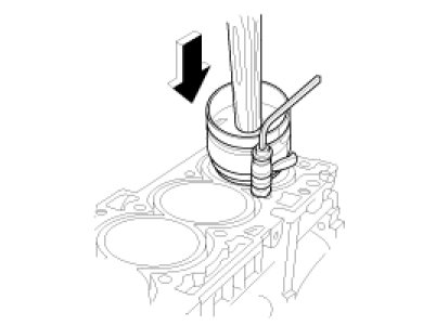 (2) Install the ring compressor, check that the bearing is securely in place, then position the piston in the cylinder, and tap it in using the wooden handle of a hammer.