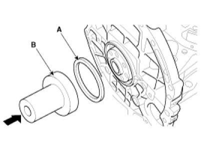 (2) Using SST(09231-H1100, 09214-3K100) (B) and a hammer, tap in the oil seal (A) until its surface is flush with the rear oil seal retainer edge.