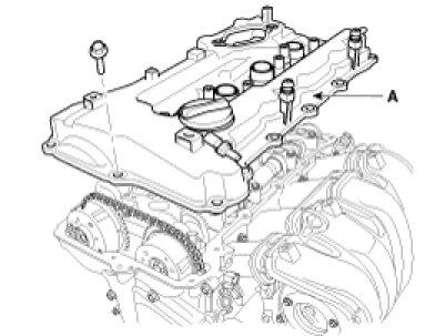 (1) The hardening sealant located on the upper area between timing chain cover and cylinder head should be removed before assembling cylinder head cover.