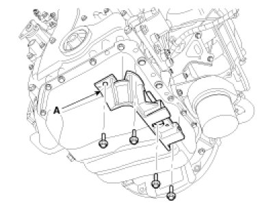 1. Remove the dust cover (A) on the bottom of the ladder frame and unfasten the two transaxle mounting bolts (B).