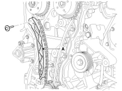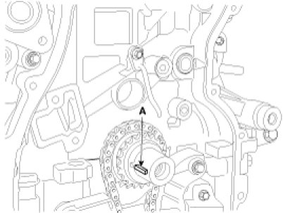 5. Install the timing chain. To install the timing chain with no slack between each shaft (cam, crank), follow the below procedure.