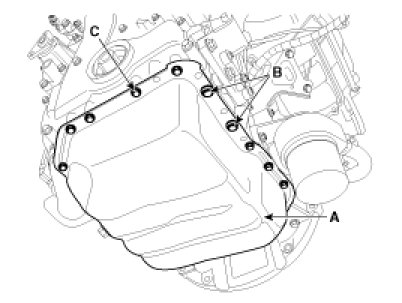 (3) Install the oil pan (A). Uniformly tighten the bolts in several passes.