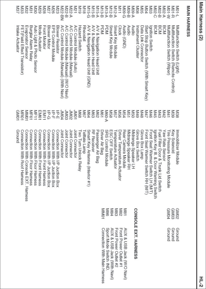 Main Harness Index: