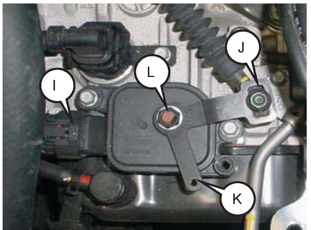 Remove the nut (L) and washer and remove the manual control lever (K).