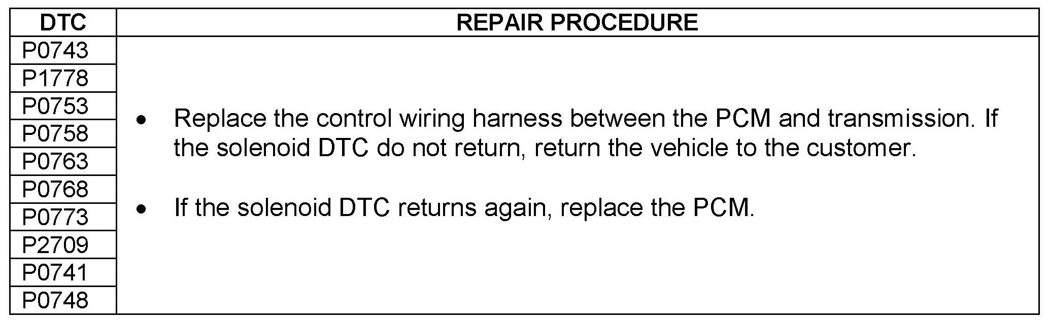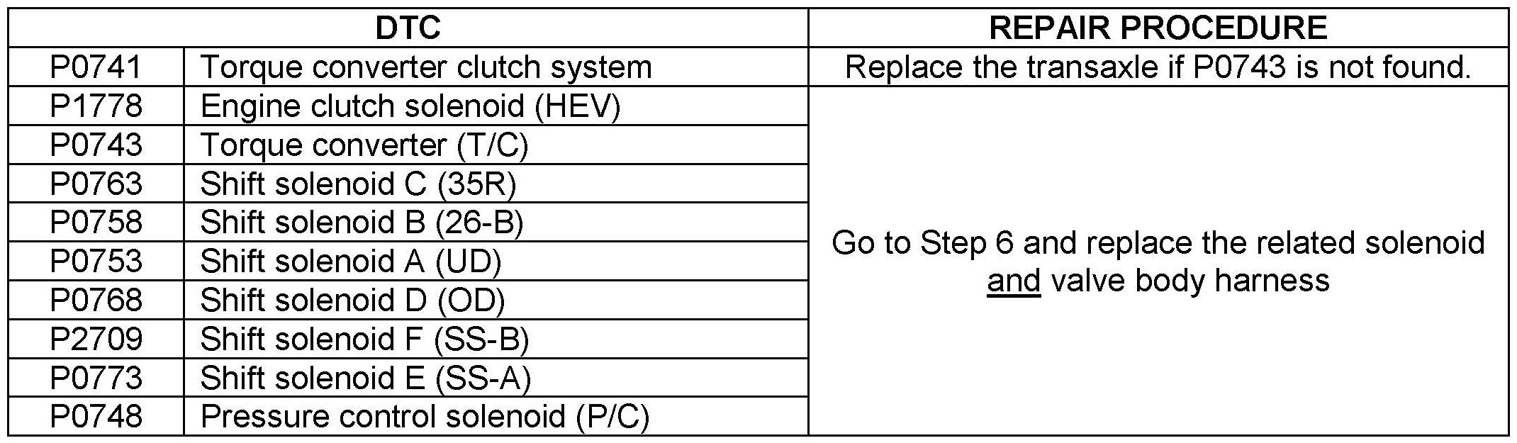 Do not replace the transmission for solenoid DTC listed above. Instead, follow the repair procedure and replace the related part.