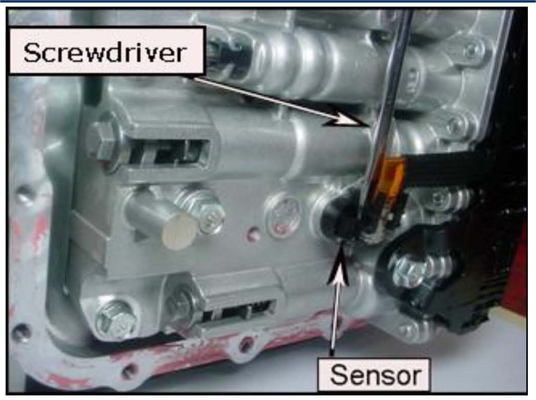 16. Use a screwdriver to depress the locking tab and pull outward on the connector to the input and output speed sensor.