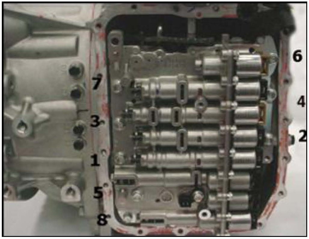 15. Remove the valve body bolts in the order shown and remove the valve body.