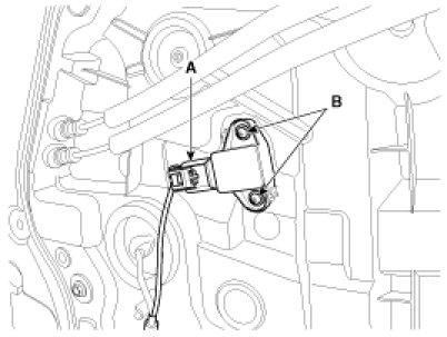 3. Disconnect the pressure side impact sensor connector (A) and remove the pressure side impact sensor mounting screws (B).