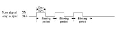 - Blinking is repetitive on/off control of turn signal with 50±5% duty ratio.
