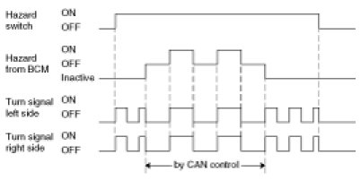 - Blinking by switch should be stopped immediately and blinking would be controlled by CAN if ' HAZARD from BCM = ON/OFF' until ' HAZARD from BCM = INACTIVE'.