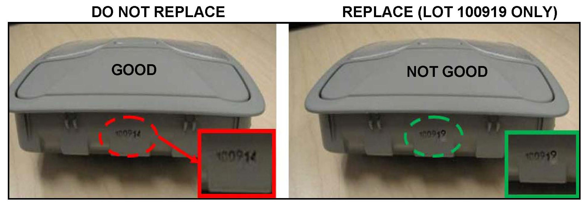 a. Inspect the original overhead console lamp assembly and check the lot number (See photo).