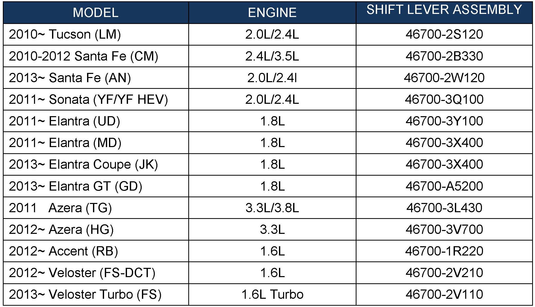 (YF/YF HEV), Tucson (LM), Veloster Turbo