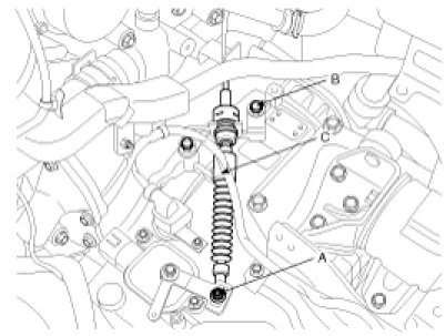 3. Remove the shift cable (C) after removing the nut (A) and the bolt (B).