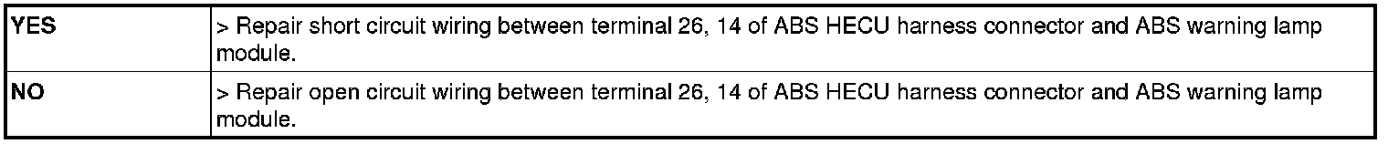 Check for continuity between terminal (M01-A) 19 of the cluster harness side connector and terminal 14 of ABS HECU harness side.