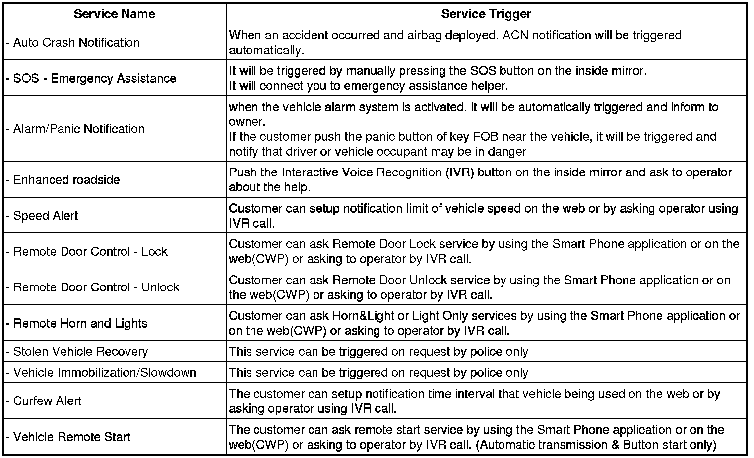 4. Control BCM by Call Center Service : Door Lock/Unlock, Horn/Light, Remote Start/Stop.