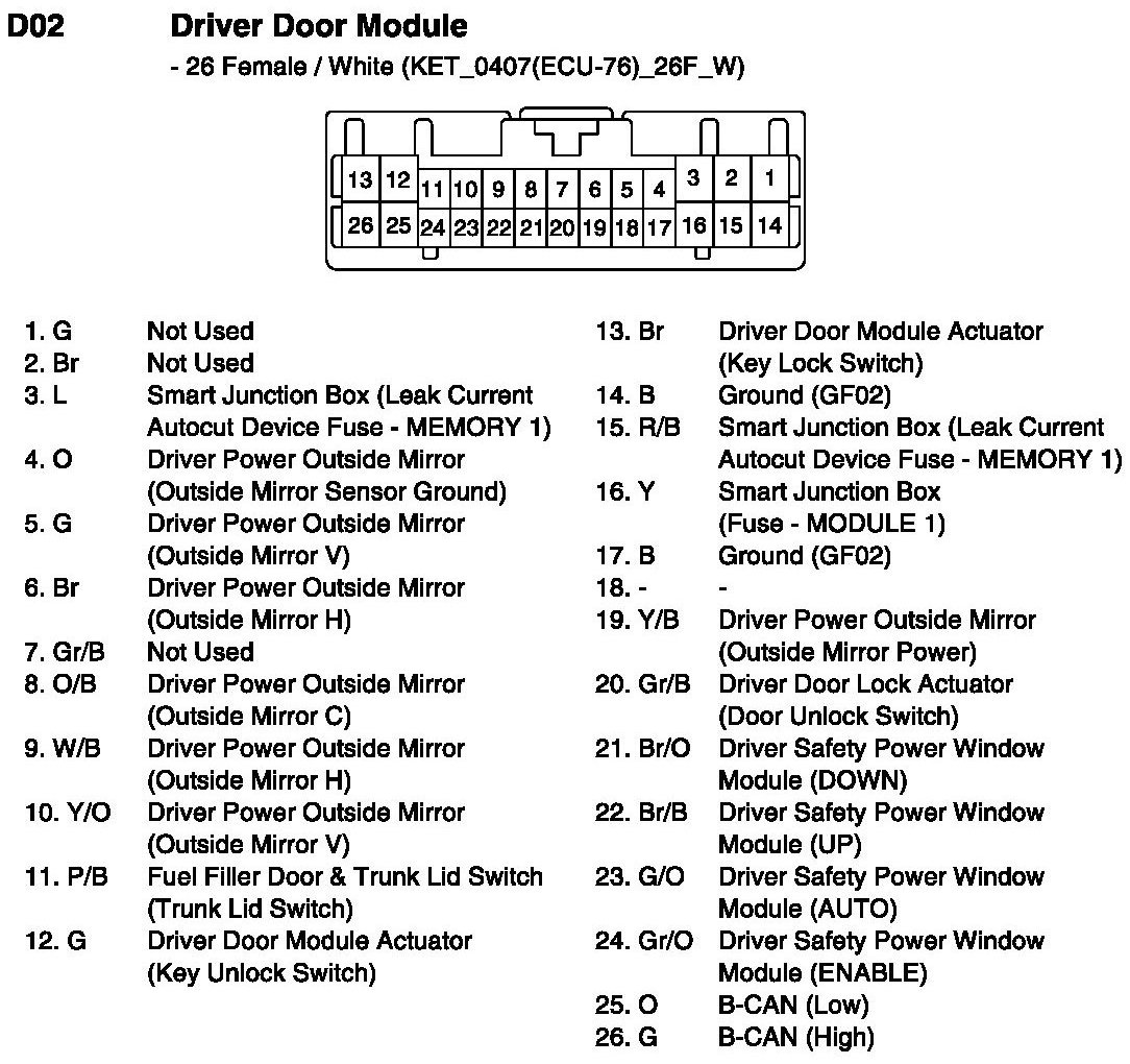D02 Driver Door Module: