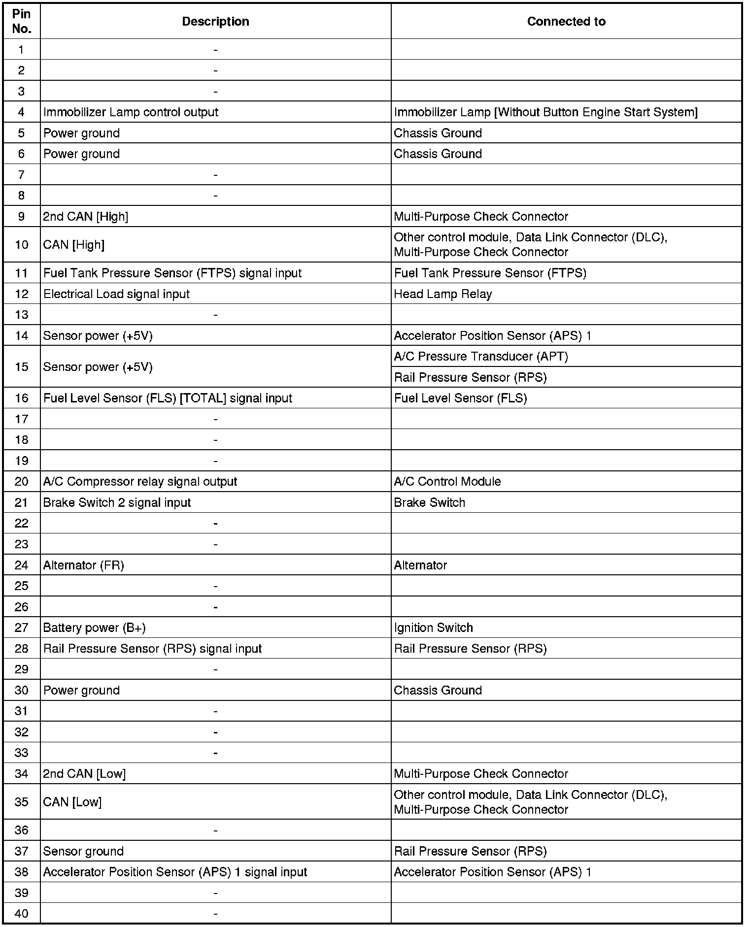 ECM Terminal Input/Output Signal