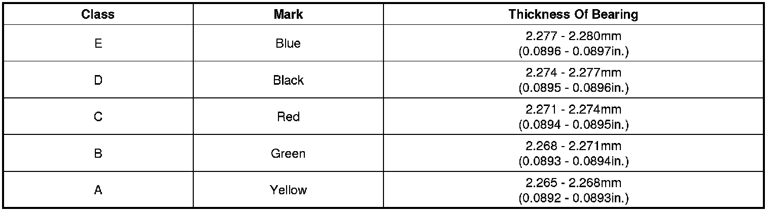 (10) If the plastigage shows the clearance is still incorrect, try the next larger or smaller bearing (the color listed above or below that one), and check clearance again.