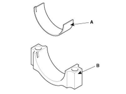 (2) Install the bearings(A) in the connecting rod and connecting rod cap(B).