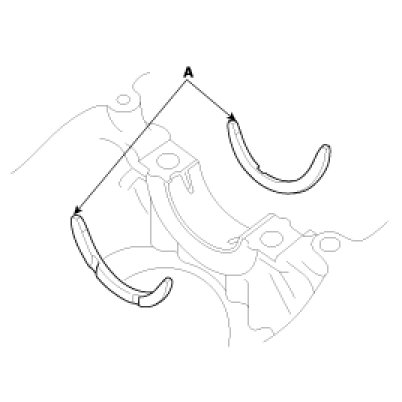 Install the 2 thrust bearings(A) under the No.3 journal position of the cylinder block with the oil grooves facing outward.