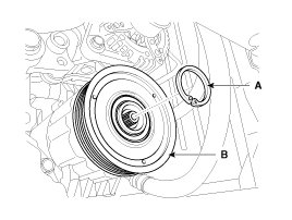 9. Remove retainer ring (A) with retainer ring pliers and then remove the pulley (B).
