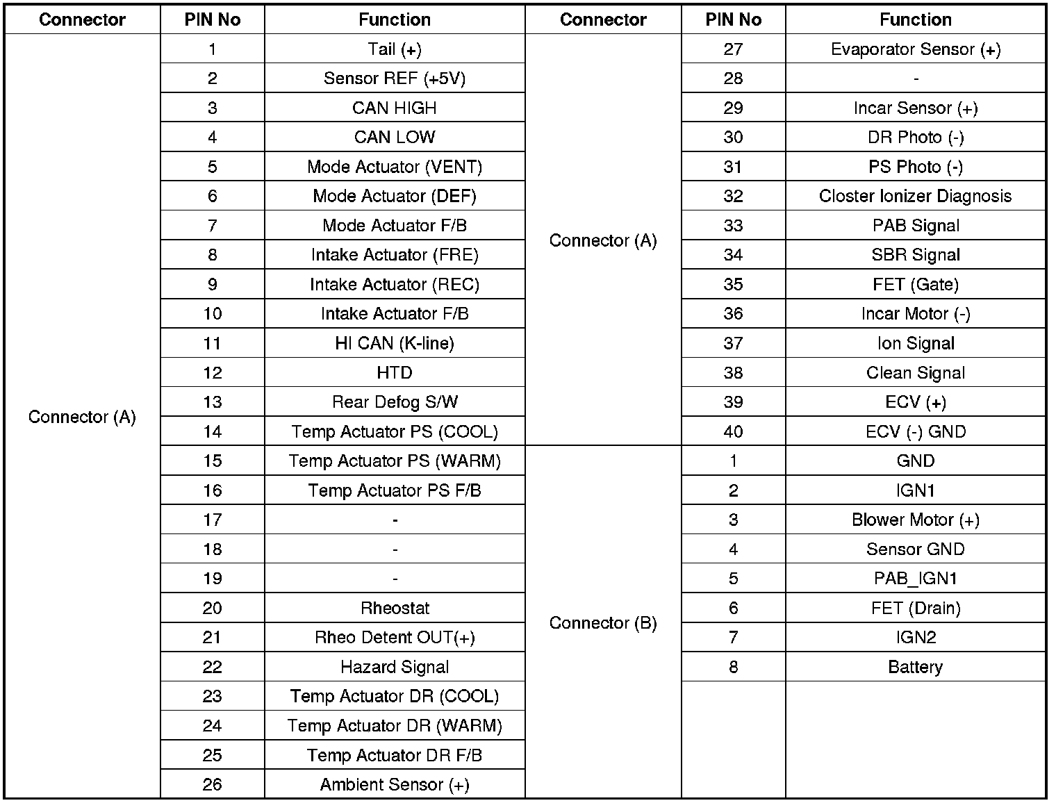 Connector pin function
