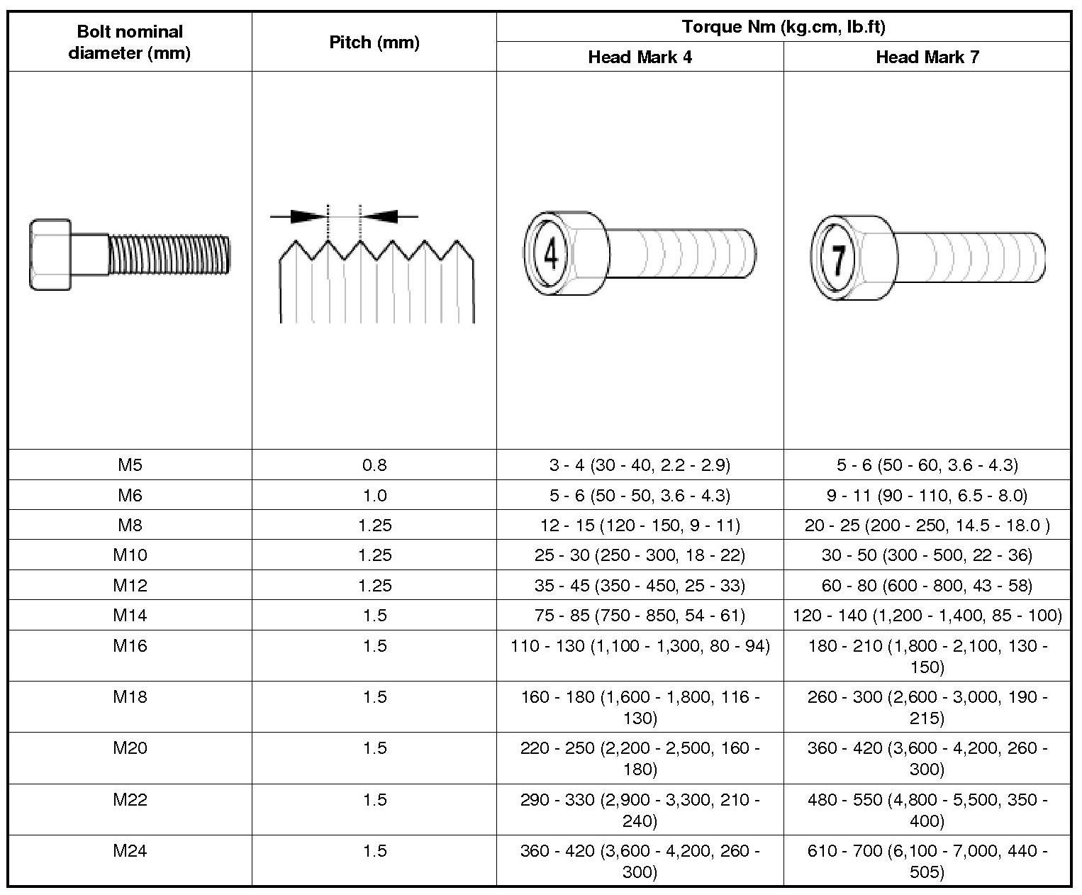 General Tightening Torque Table