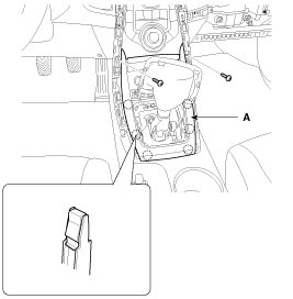 8. After loosening the mounting screw, nut, clip, then remove the console side cover (A).