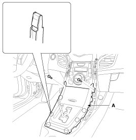 1. Using a screwdriver or remover, remove the rear console cover (A).