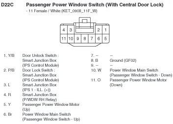 D22C Passenger Power Window Switch (With Central Door Lock):