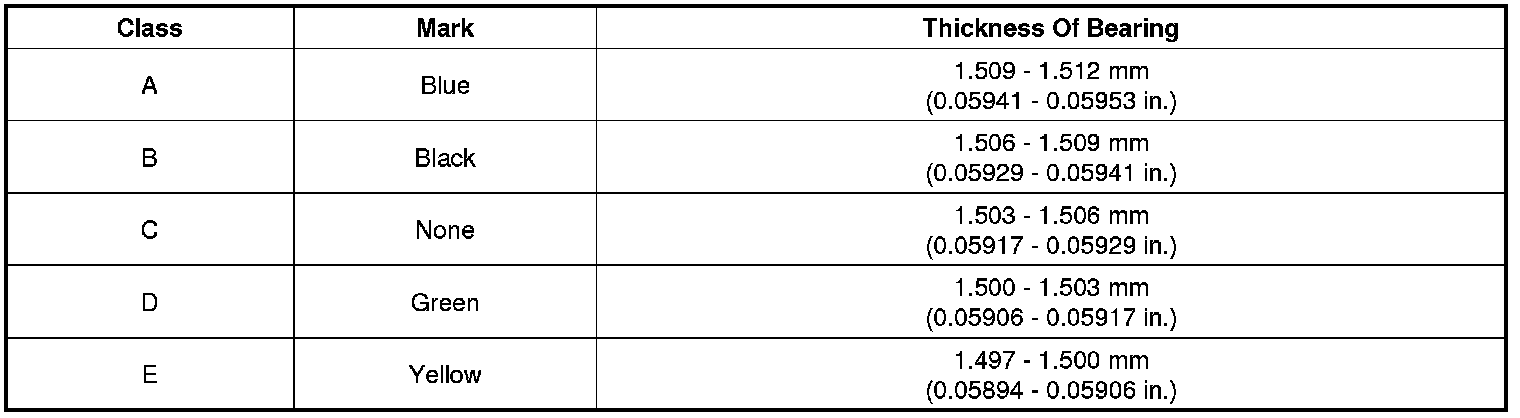 (9) If the measurement from the plastigage is too wide or too narrow, remove the upper and lower bearing and then install new bearings with the same color mark. Recheck the oil clearance.