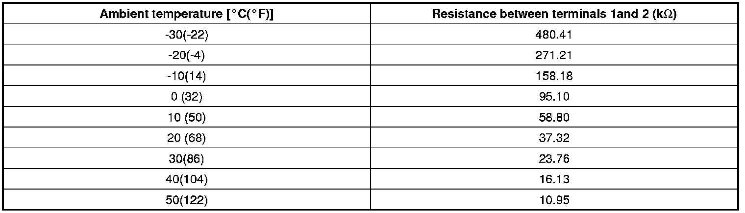 3. Check the resistance of ambient temperature sensor between terminals 1 and 2 whether it is changed by changing of the ambient temperature.