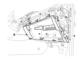 6. Loosen the mounting bolts and screws and then remove the glove box housing (A).