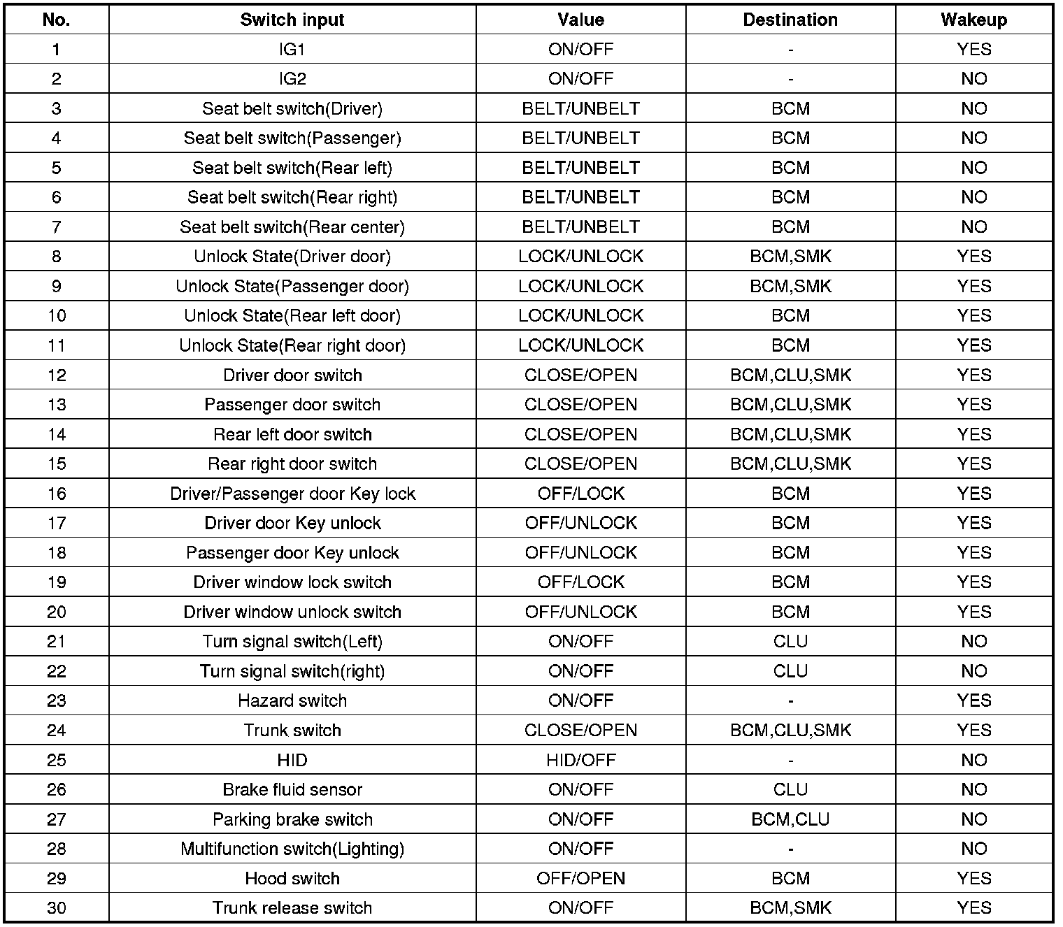 A. "Sleep" condition : IG OFF, constant input switch, CAN network doesn't activate.