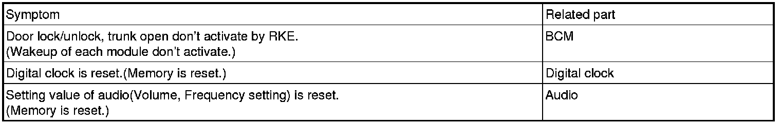 *If mode switch OFF(before delivering to customer) is set, power of BCM, Digital clock and audio is shut off.
