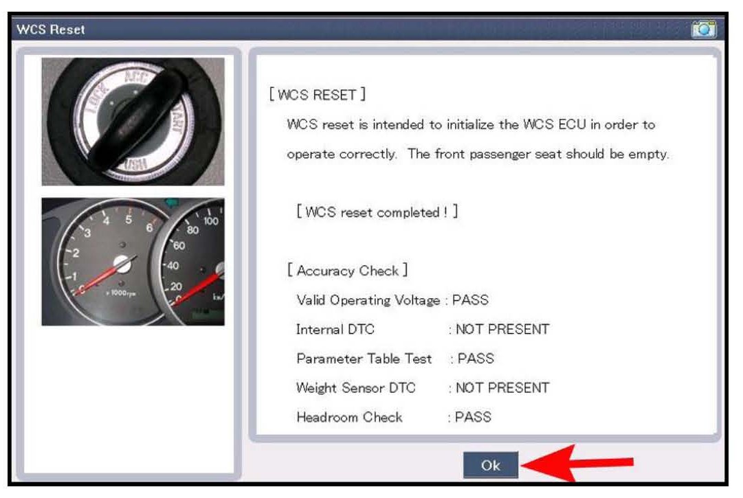 13. Once the reset is completed, press the "OK" to exit the WCS RESET menu.