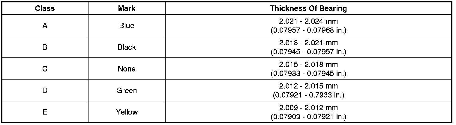 Main Bearing Size Codes