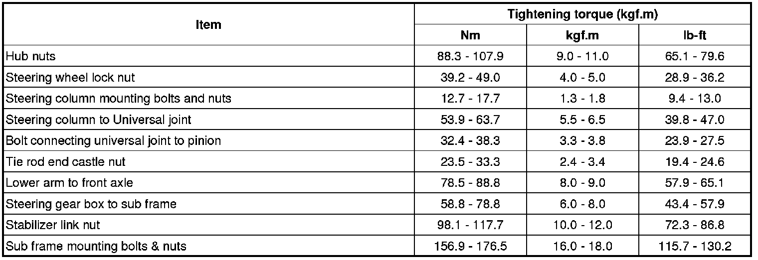 Tightening Torques